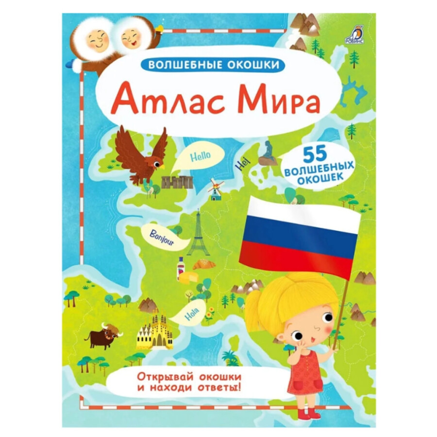 «Атлас мира» с 55 волшебными окошками подарит часы познавательного досуга и ответит на множество вопросов, которые обычно задают дети, изучая географию.