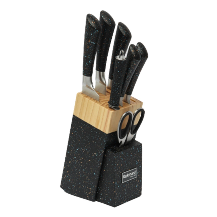 Подробное описание: Набор кухонных ножей 9 предметов с деревянной Подставкой (4 вида) (тёмно-серый)