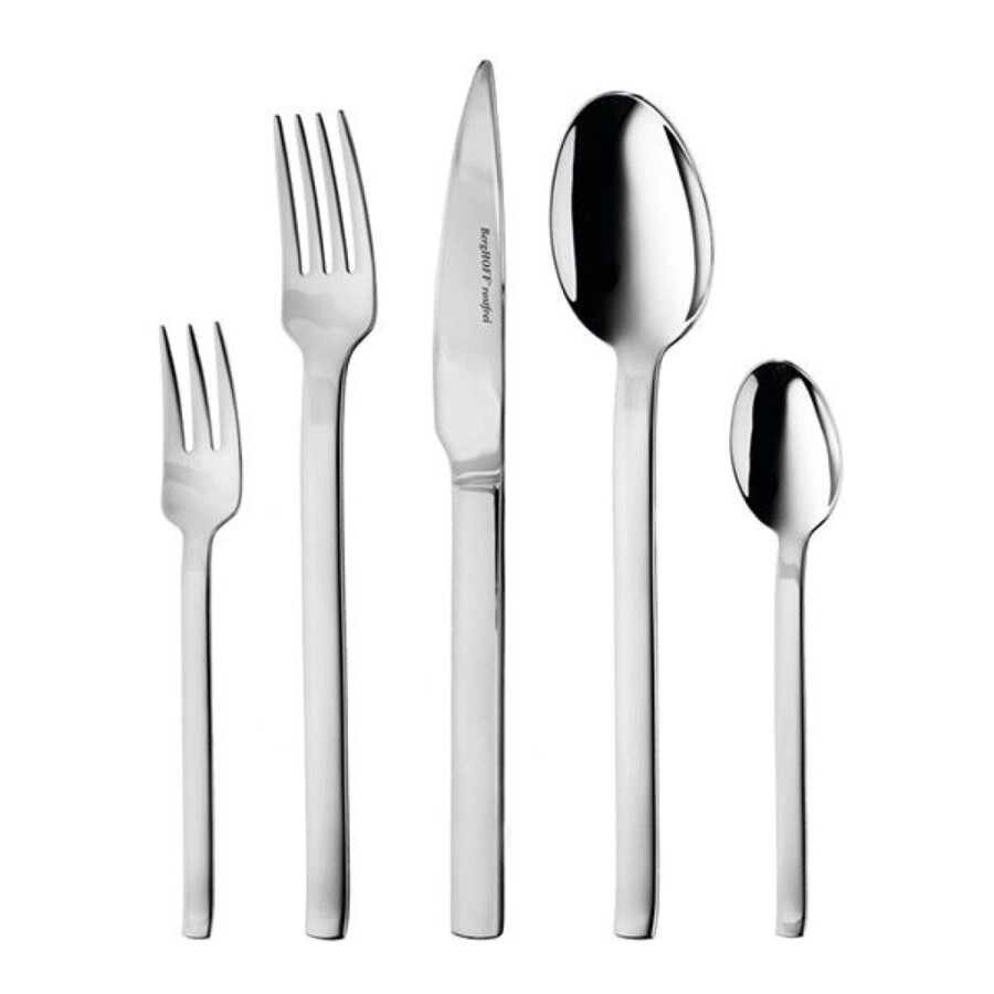 Набор столовых приборов Berghoff Essence 30 пр. 1230500 - авторская линия дизайнера Ральфа Крамера. Столовые приборы изготовлены из высококачественной нержавеющей стали 18/10. Набор на 6 персон включает все необходимые приборы, включая десертную вилку. Прямые ручки и строгая форма - отличительная черта данного набора. Подходит для мытья в посудомоечной машине.