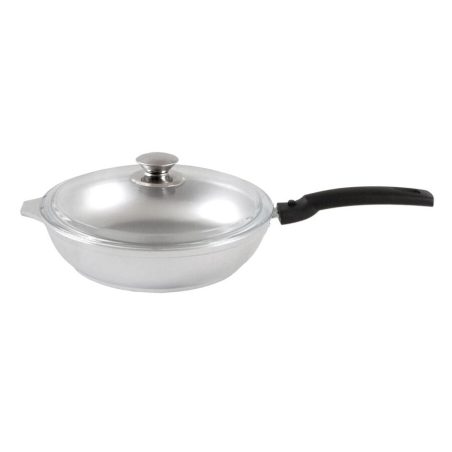 - значительная толщина стенок и дна исключает деформацию корпуса сковороды, гарантирует ее долговечность;