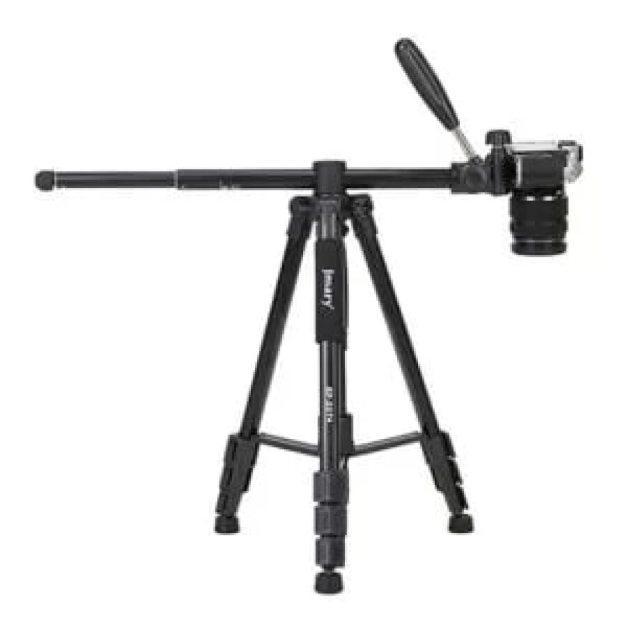 Штатив Jmary KP-2294 под фото- или видеокамеру выполнен в качестве напольного трипода с резиновыми наконечниками на опорных ножках, благодаря чему он устойчиво стоит на полу и не скользит. Площадка со стандартным винтовым креплением 1/4″ для устройства расположена на высоте от 57.5 до 179 см. Ее положение можно регулировать как по горизонтали, так и по вертикали, например, развернуть камеру в вертикальное положение. Благодаря наличию пузырькового уровня, можно идеально выровнять кадр по горизонту. Кроме того, центральную часть можно приподнять, полностью вынуть, чтобы использовать как монопод, либо закрепить сверху в горизонтальном или наклонном положении. Конструкция продумана до мельчайших деталей: выдвижные секции быстро и надежно раздвигаются, фиксируются между собой. В нижней части предусмотрен крюк для сумки или груза. В комплект входит практичный чехол с длинной ручкой для удобства транспортировки штатива.