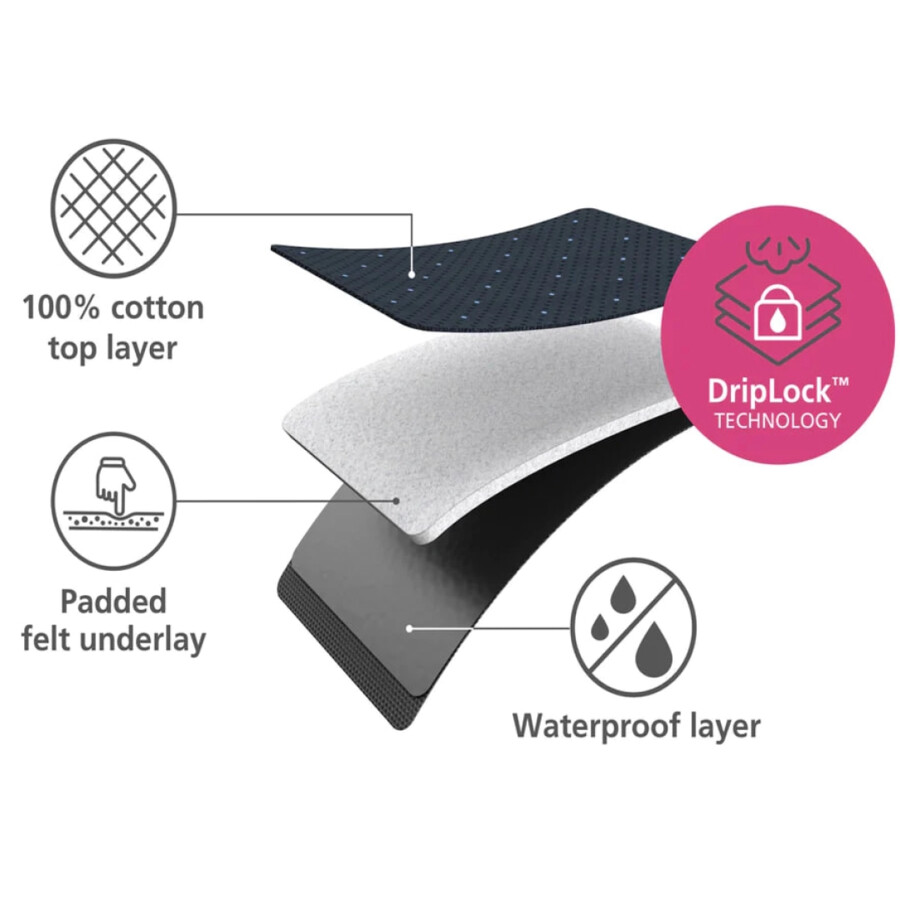 Многослойное покрытие с технологией DripShield ™ разработано для работы с большими объемами глажки и для использования утюгов с парогенераторами. , ,Конструкция регулируется по высоте: от 84 см до 99 см. Чехол оборудован термостойкой силиконовой подставкой для утюга. Он снимается и удобно складывается для компактного хранения. Есть крючок для подвешивания доски.