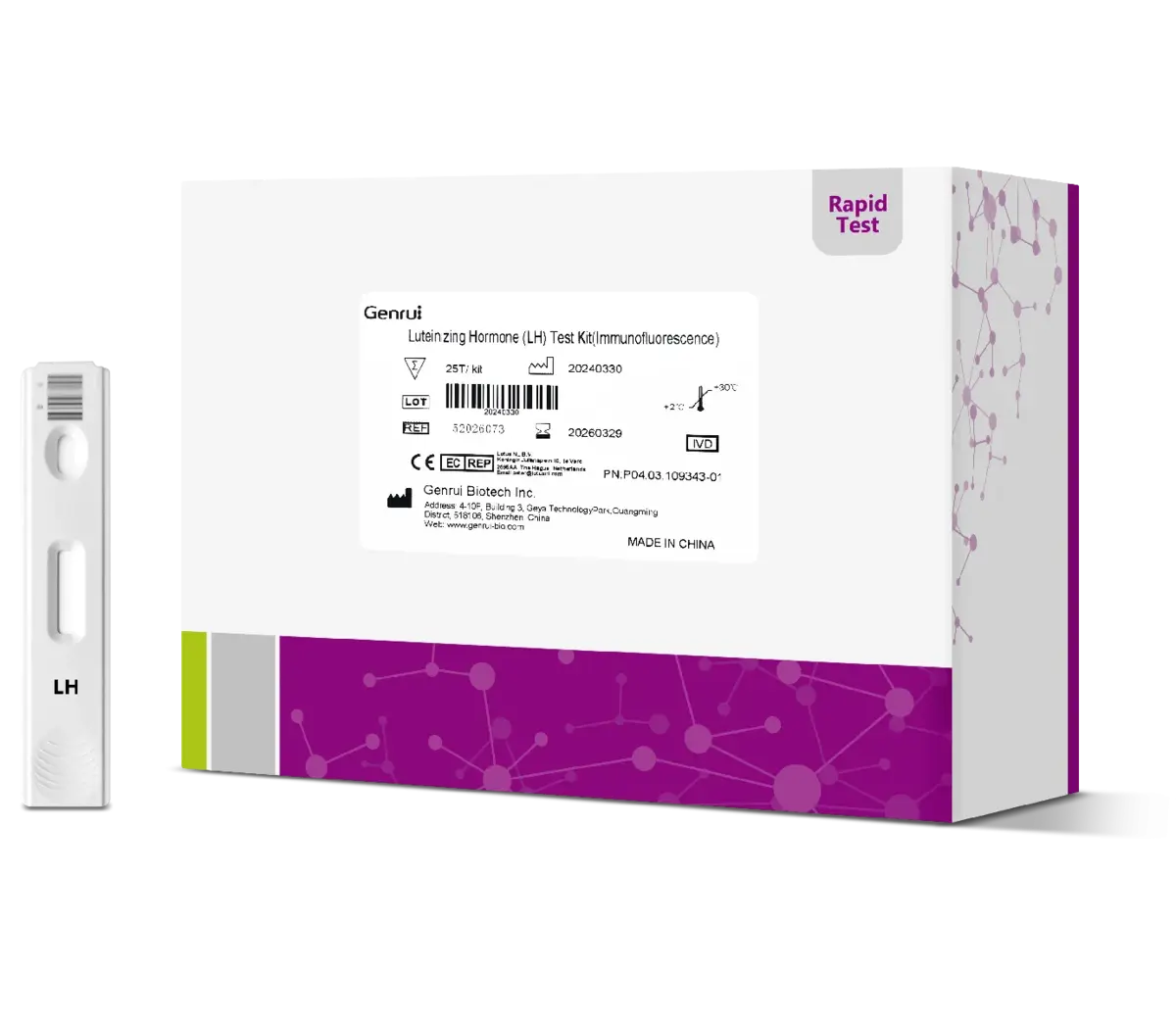 В этом наборе используется сэндвич-метод антител. После того, как образцы, содержащие ЛГ, полностью смешаны с разбавителем для образцов, отбирается соответствующее количество раствора и добавляется в лунку для образца. ЛГ в образце связывается с моноклональным антителом ЛГ, связанным с флуоресцентными частицами, с образованием комплекса флуоресцентная частица-антитело-антиген. Этот иммунный комплекс затем хроматографируют вдоль нитроцеллюлозной мембраны до области определения (Т), объединяют с предварительно покрытым моноклональным антителом ЛГ и продолжают хроматографировать до области контроля качества (С). Меченый флуоресцентными частицами козий антикроличий IgG связывается с предварительно покрытым кроличьим IgG и представляет линию контроля качества. Интенсивность флуоресценции области анализа прямо пропорциональна уровню ЛГ в образце.