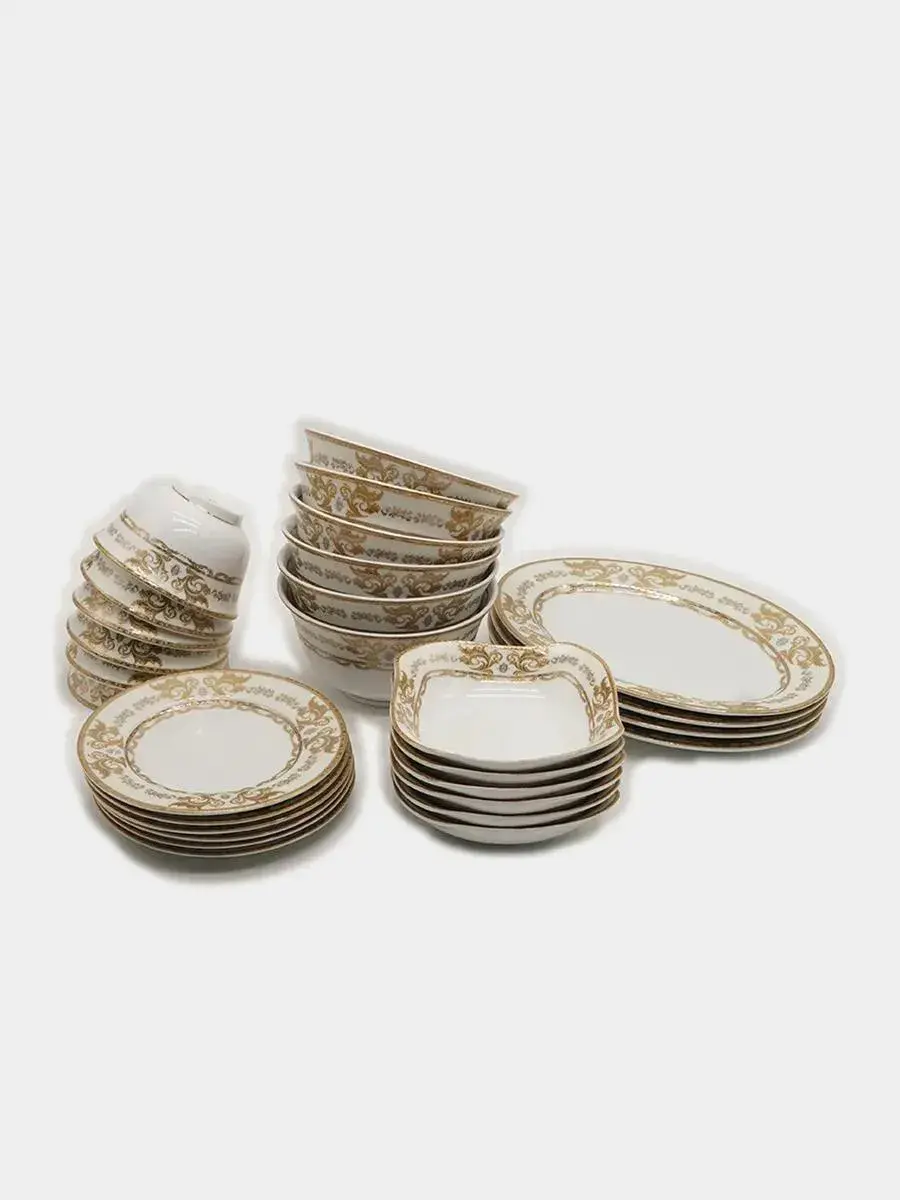 Столовый набор из твердого фарфора с позолотой на 60 предмета.