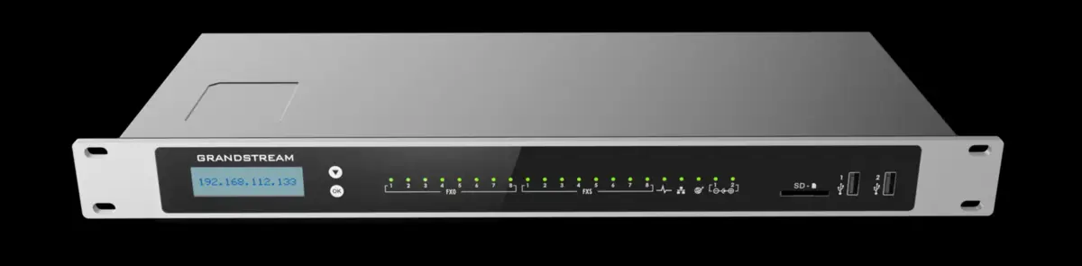 Grandstream UCM6308 - гибридная ІР-АТС; оснащена 8-ю портами FXS и 8-ю портами FXO, поддерживает до 3000 абонентов и до 450 одновременных звонков, конференцсвязь, видеозвонки и передачу факсимильных сообщений. Из ключевых преимуществ Grandstream UCM6308 следует отметить простой, интуитивно понятный интерфейс, способствующий быстрому развертыванию телефонной системы. Станция поддерживает кластеризацию, может быть установлена в 19" шкаф / телекоммуникационную стойку.