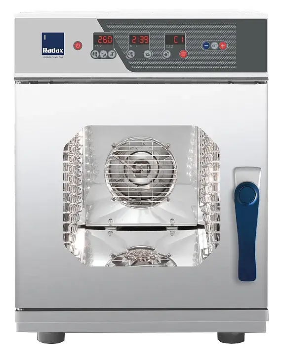 Пароконвектомат используется совместно с вытяжным зонтом Radax KG53MWF2.