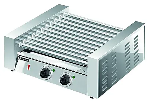 Роликовый гриль Hurakan HKN-GW11M предназначен для обжаривания сосисок и сарделек, мясных и рыбных рулетов на предприятиях общественного питания и торговли. Модель оснащена регулируемыми термостатами и индикаторами нагрева. Корпус и ролики выполнены из нержавеющей стали.