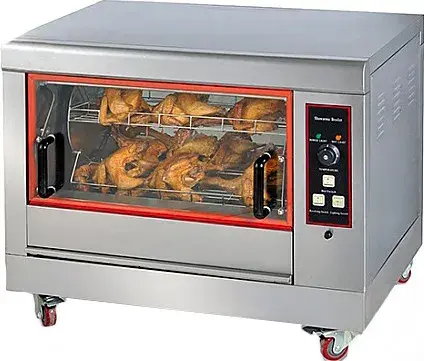 Электрический карусельный гриль ROAL EB-268 используется на предприятиях общественного питания и торговли для равномерного запекания куриных тушек, окорочков, грудок и крылышек. Модель оснащена терморегулятором, 4 корзинками, чашей для масла и 4 колесами. Дверца с жаропрочным стеклом и внутренняя подсветка позволяют контролировать процесс приготовления. Корпус выполнен из нержавеющей стали.