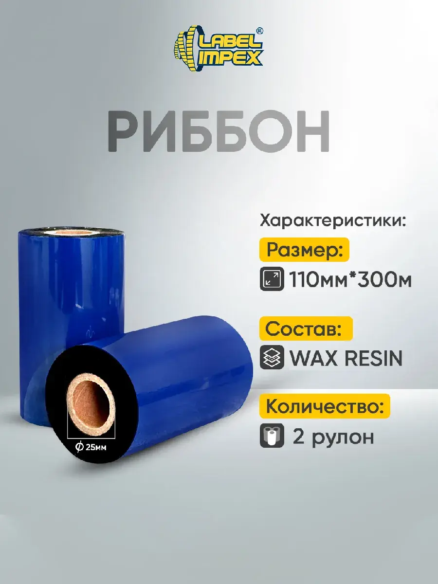 Подробное описание: Термотрансферная лента Wax Resin Ribon, 110x300 м, 2 шт.