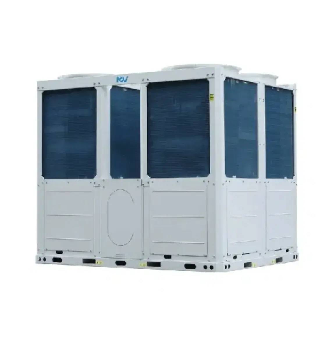 Холодопроизводительность, кВт не менее 164, Теплопроизводительность, кВт не менее 180, Электропитание, В/Гц/Ф 380, Гидравлическое сопротивление, кПа не более 96, Уровень звукового давления, дБ(А) не более 72, Тип компрессора Инверторный постоянного тока, Количество компрессоров не менее 2, Тип вентилятора Постоянного тока, Теплообменник Пластинчатый, Расширительный вентиль EXV, Тип хладагента R32, Диаметр труб, DN, мм не более DN80, Рабочий диапазон наружных температур при охлаждении, °C -10...+48, Рабочий диапазон наружных температур при нагреве, °C -20...+43, Температура воды на выходе (охлаждение), °С 0...+20, Температура воды на выходе (нагрев), °С +25...+54, Размер (Ш×В×Г), мм не более 2752×2413×2220, Гидромодуль в комплекте