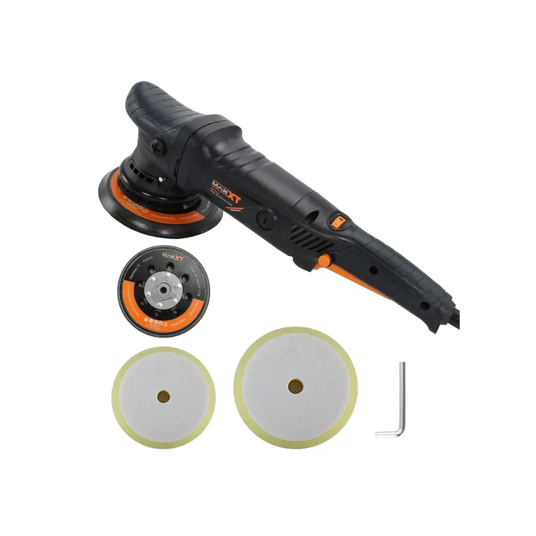 A7176 - эксцентриковая полировальная машина MaxXT. Легкая, отлично сбалансированная машинка для полировки любой поверхности. Прорезиненная передняя рукоятка и резиновые вставки в корпусе инструмента обеспечивают комфортную работу. Две подошвы 125 мм и 150 мм. 6 скоростей. Отсутствие вибрации, наличие плавного пуска.