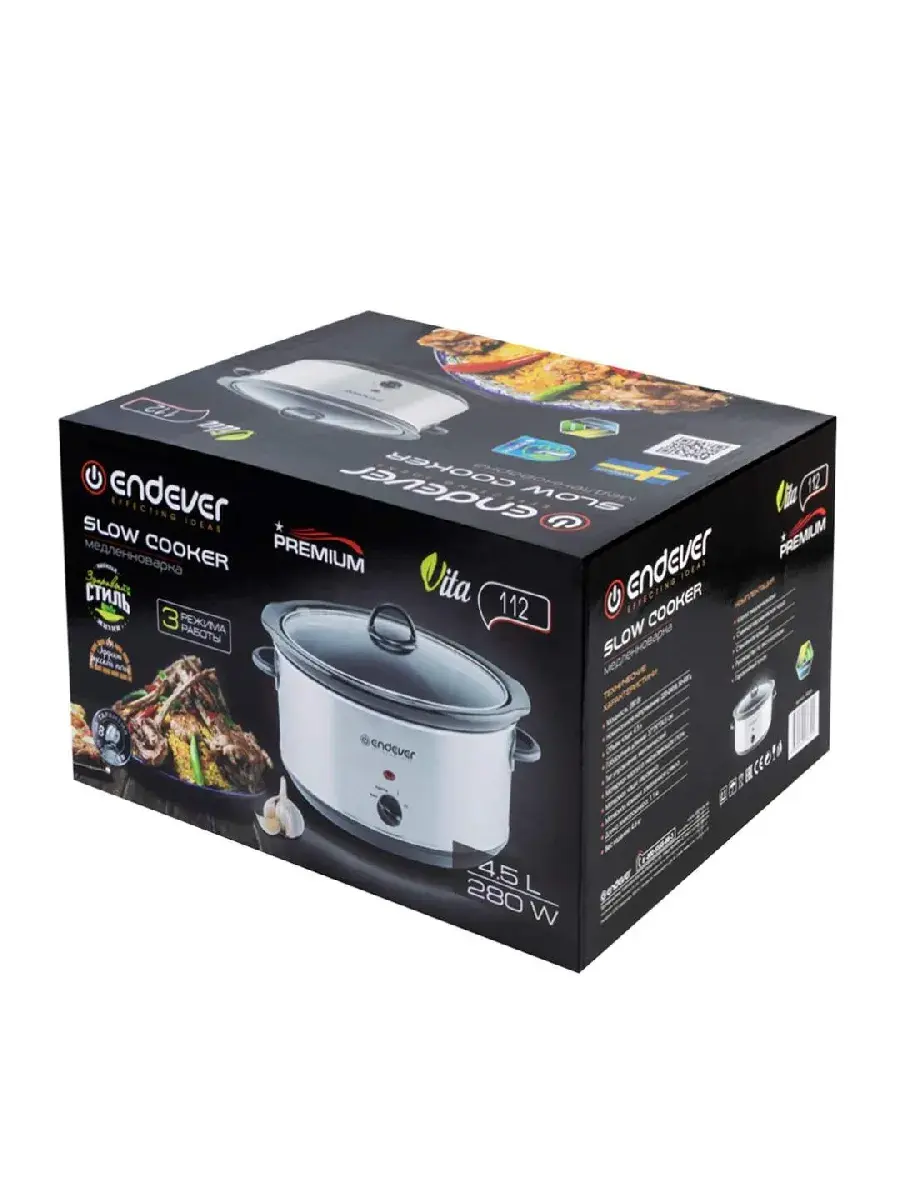 ENDEVER VITA-112 — это современная медленноварка, созданная для тех, кто ценит насыщенный вкус и натуральность блюд, приготовленных по технологии томления, как в русской печи. Благодаря мощности 280 Вт и нагревательному элементу типа ТЭН, устройство обеспечивает равномерный нагрев и деликатную термообработку продуктов.