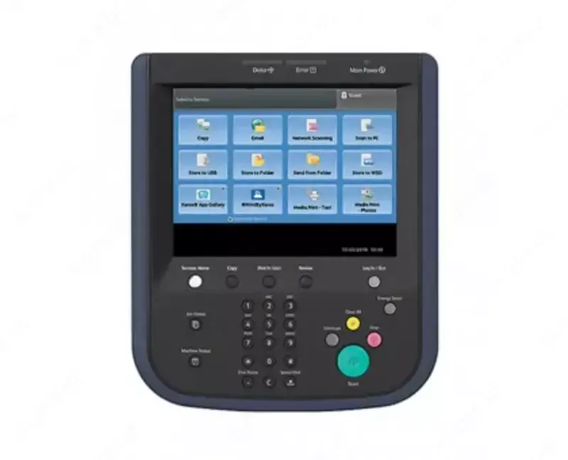 Эта панель — основной элемент взаимодействия пользователя с устройством: запуск печати, копирования, сканирования, отправки по электронной почте и (при наличии модуля) факса. Также через неё доступна галерея приложений ConnectKey Apps для работы с облачными сервисами и вертикальными решениями