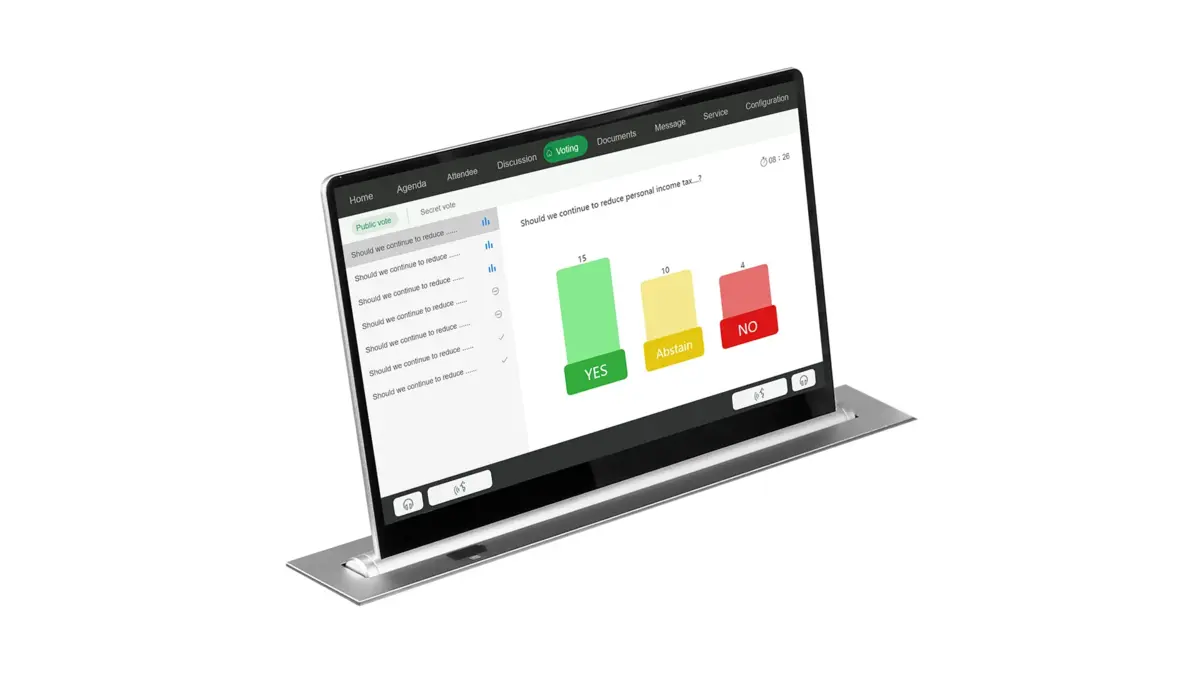 Vissonic VIS-15LSSC — это ультратонкий моторизированный lift-дисплей с диагональю 15,6", разработанный специально для современных multi-purpose и paperless конференц-залов. Экран аккуратно выдвигается из поверхности стола и автоматически поворачивается под оптимальным углом наклона. После завершения использования он тихо опускается и закрывает декоративную крышку, активируя функцию защиты от защемления. Устройство поддерживает управление кнопками на панели, дистанционно и через центральный контроллер по протоколам RS-232 и RS-485, обеспечивая гибкость управления. Устройство может быть управляемо индивидуально или группой посредством централизованного и синхронного управления. Поддерживается разрешение до Full HD (1920×1080), возможна версия с 4K дисплеем. Основные характеристики