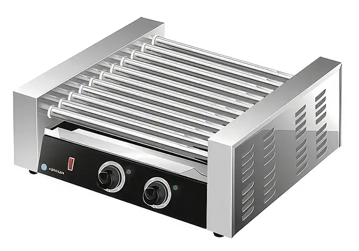 Роликовый гриль Hurakan HKN-GW11M предназначен для обжаривания сосисок и сарделек, мясных и рыбных рулетов на предприятиях общественного питания и торговли. Модель оснащена регулируемыми термостатами и индикаторами нагрева. Корпус и ролики выполнены из нержавеющей стали.