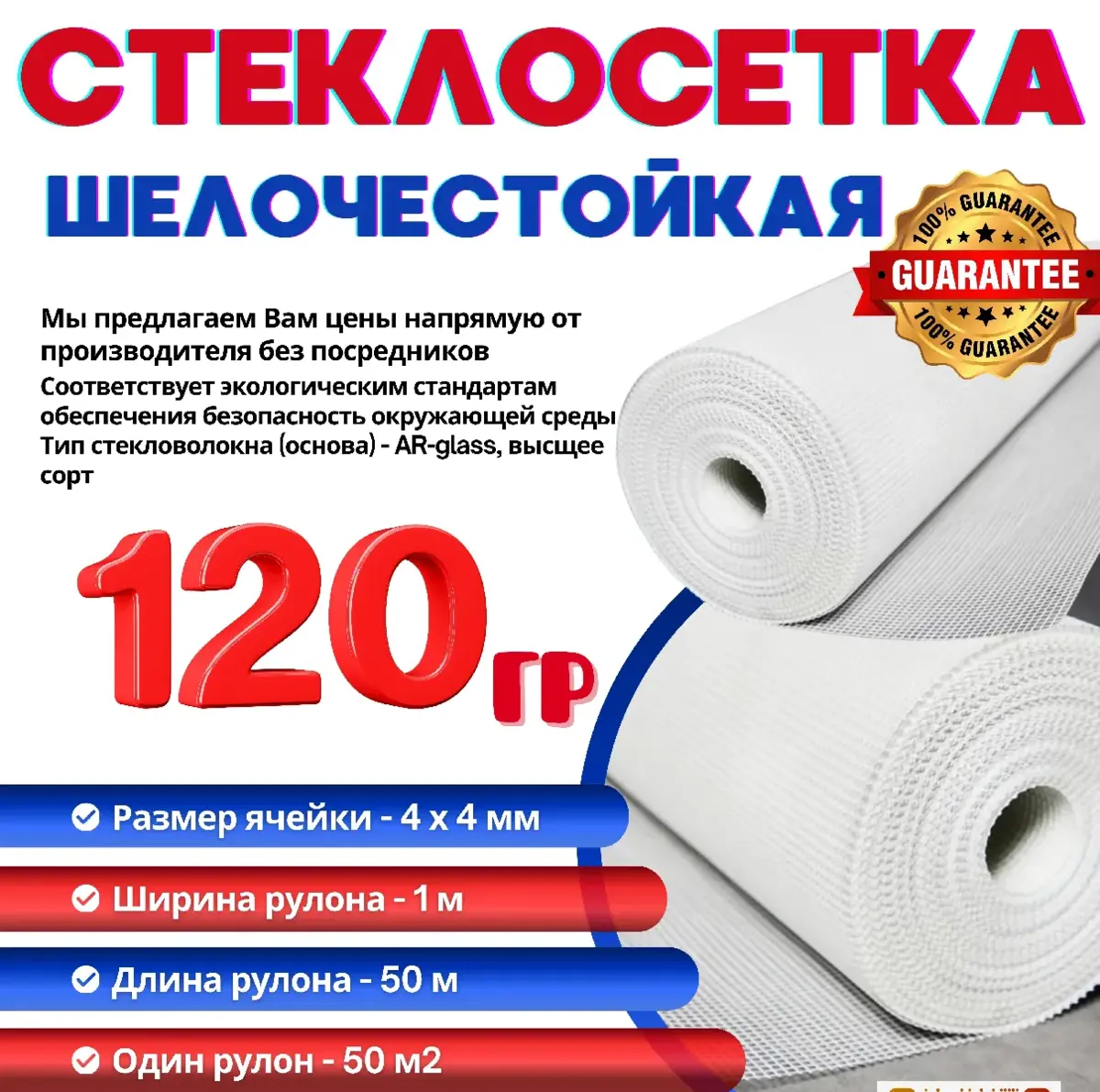 Подробное описание: Стеклосетка фасадная 120гр 1м х 50м