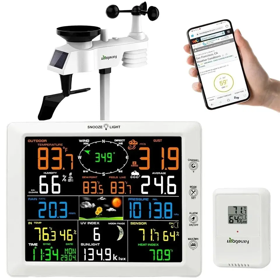Uy uchun 7-funksiyali WiFi ob-havo stansiyasi (8.3 dyuymli rangli displey)