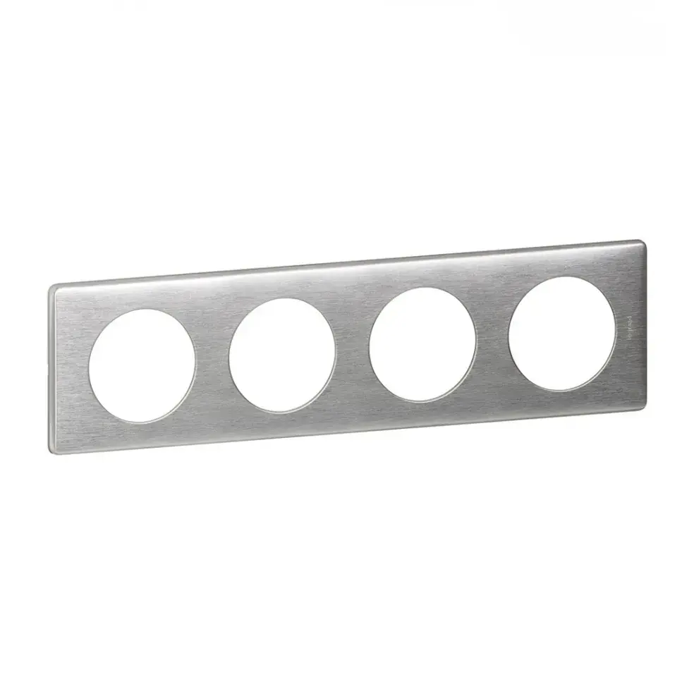 Продаётся рамка Legrand серии Celiane, трёхпостовая, алюминий — арт. 68923. Подходит для установки трёх модулей (розеток, выключателей и т.п.). Цвет — металлик «алюминий». Материал — металл (или металлизированный металл) с анодированным покрытием.
