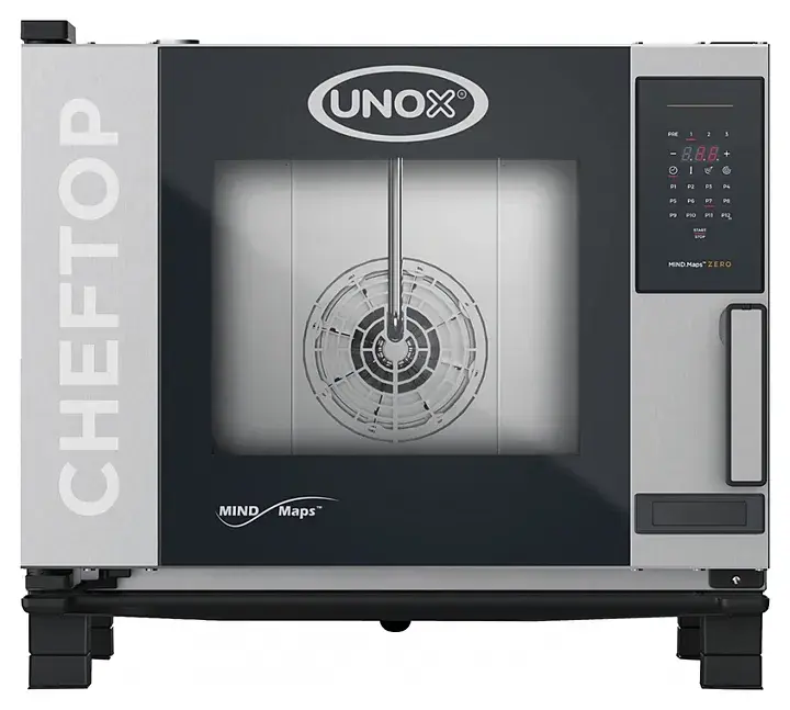 Пароконвектомат UNOX XEVC-0511-EZRM серии CHEFTOP MIND.Maps™ ZERO предназначен для приготовления различных блюд, выпечки хлебобулочных и кондитерских изделий на предприятиях общественного питания и торговли, в пекарнях и кондитерских. Модель оснащена встроенной в дверь светодиодной LED-подсветкой и C-образными с зубчатыми нишами направляющими. Внутреннее открывающееся стекло облегчает чистку и обеспечивает максимальную гигиену. Камера с закругленными углами выполнена из нержавеющей стали AISI 304, направляющие - из профилированной стали, дверной замок - из высокопрочного самосмазывающегося технополимера, внутренний штифт дверной ручки - из углеродного волокна.