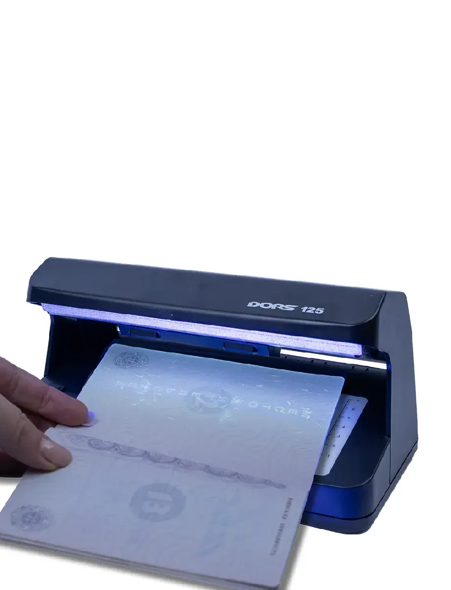 Устройство для визуального анализа аутентичности банкнот разных валют, ценных бумаг, официальных документов и удостоверений личности с использованием нескольких подходов. Благодаря мощному УФ-источнику (12 Вт) и просторной зоне обзора, DORS 125 удобен для работы при ярком освещении, включая проверку пачек "веером" или в стопке.