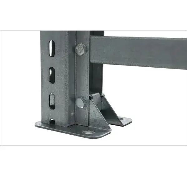 крепление балки к стойкам безболтовое. Балка крепится к стойке на зацепах и закрепляется фиксатором, предохраняющим балку от случайного подъема;