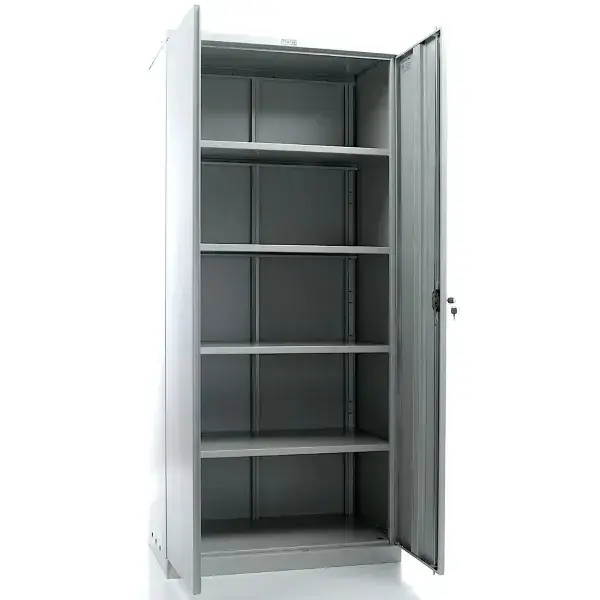 ригели из оцинкованной стали и пластиковые втулки обеспечивают бесшумный ход дверей и надежное запирание шкафа;