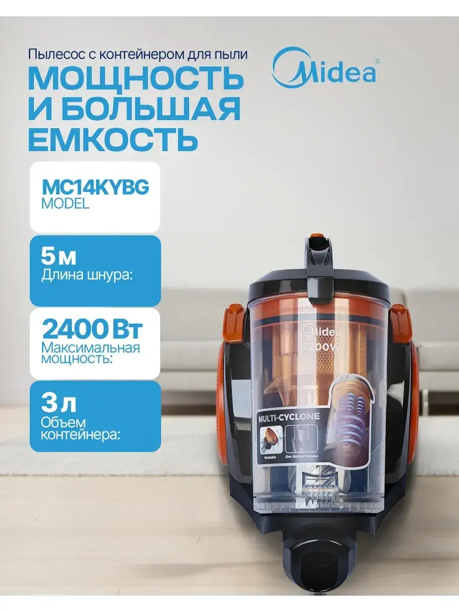 Забудьте о мешках, забудьте о грязных коврах, забудьте о том, что такое дышать пылью в воздухе – этот мощный зверь от MIDEA сделает вашу жизнь проще и лучше.