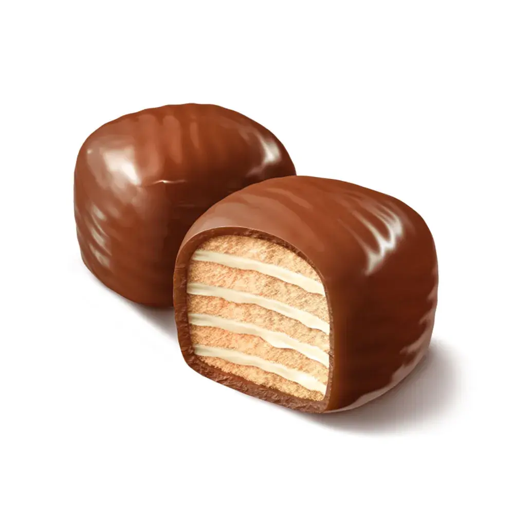 Хрустящее вафельное драже в глазури с четырьмя насыщенными вкусами: три шоколада, кокос, шоколад и молочно-сливочный. В составе — ароматное кокосовое масло и какао-порошок, которые придают драже насыщенность и мягкость вкуса.