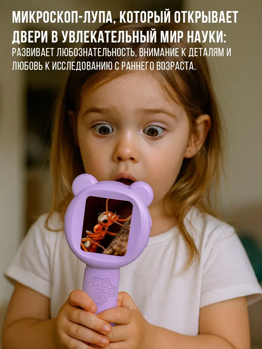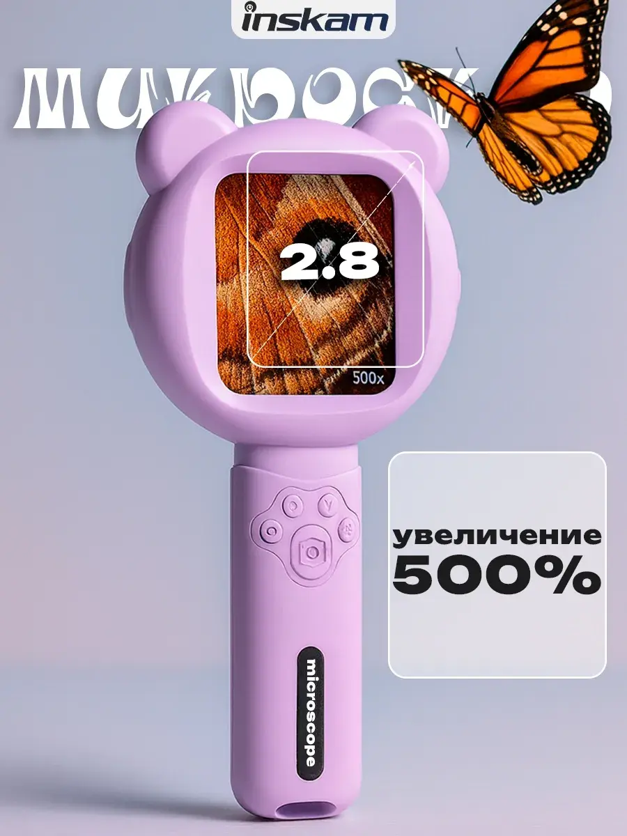 — Увеличение до 500x — видны текстуры, трещины и мельчайшие детали — Встроенный экран 2.8" — наблюдение без подключения к телефону — Камера 2 МП — фото и видеозапись исследований — LED и УФ-подсветка — чёткое изображение при любом освещении — Автономная работа от аккумулятора — Подключение к ПК как USB-микроскоп — Поддержка карты памяти microSD (не входит в комплект)