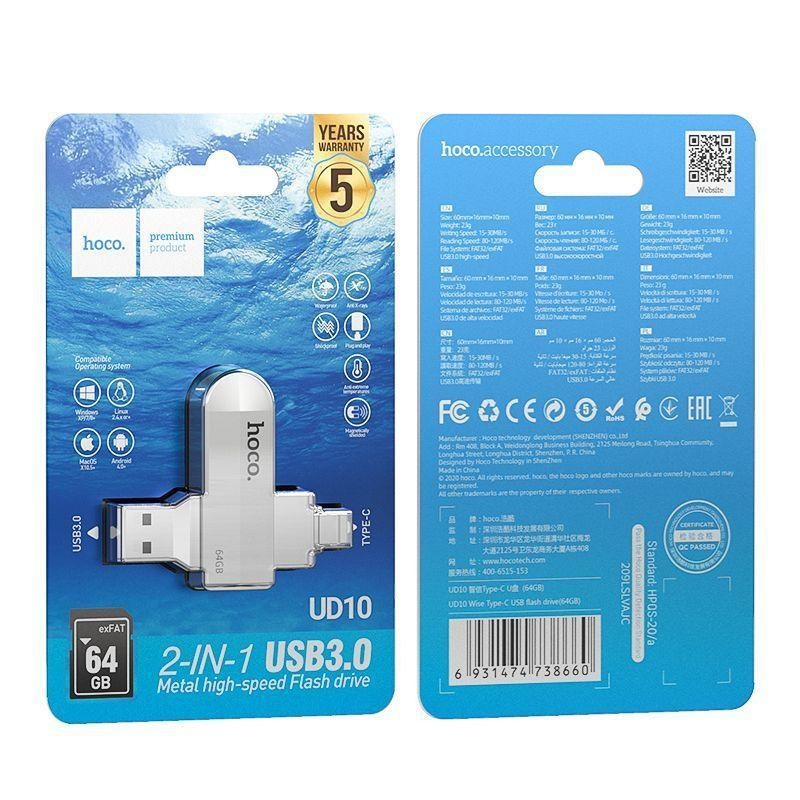 Подробное описание: USB-флешка Hoco 2в1 UD10 USB 3.0+Type-C 64 Гб
