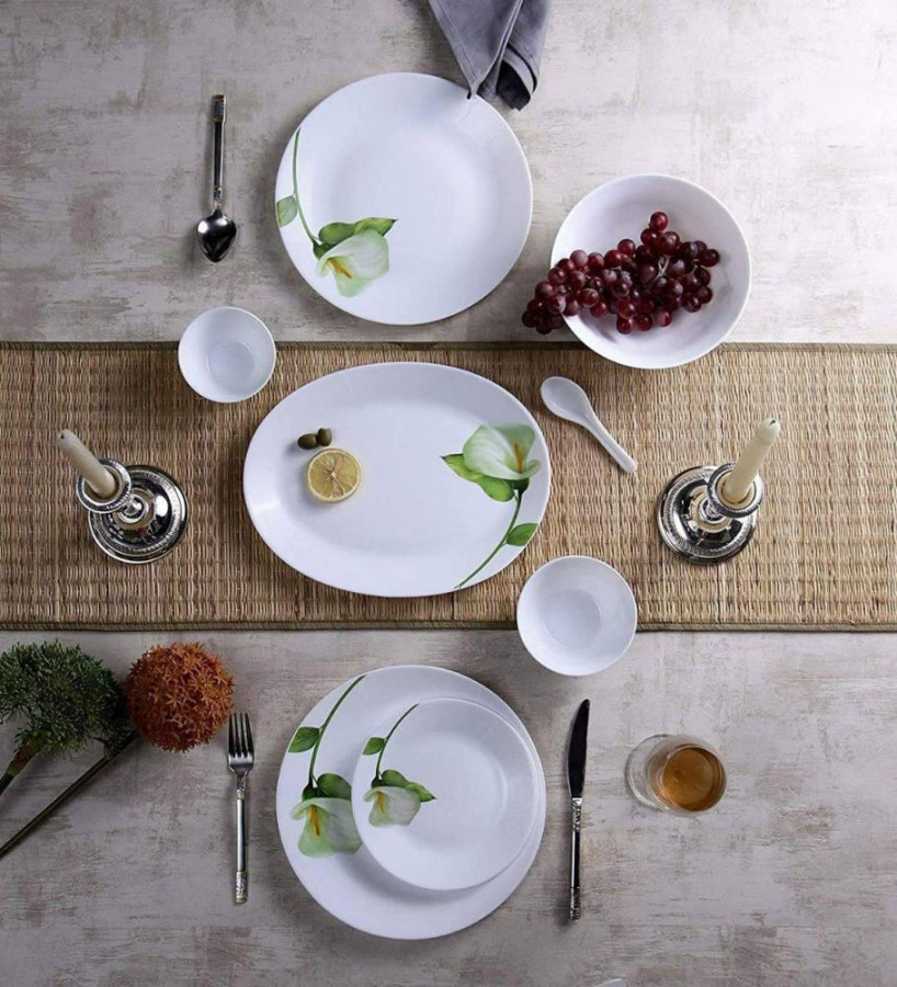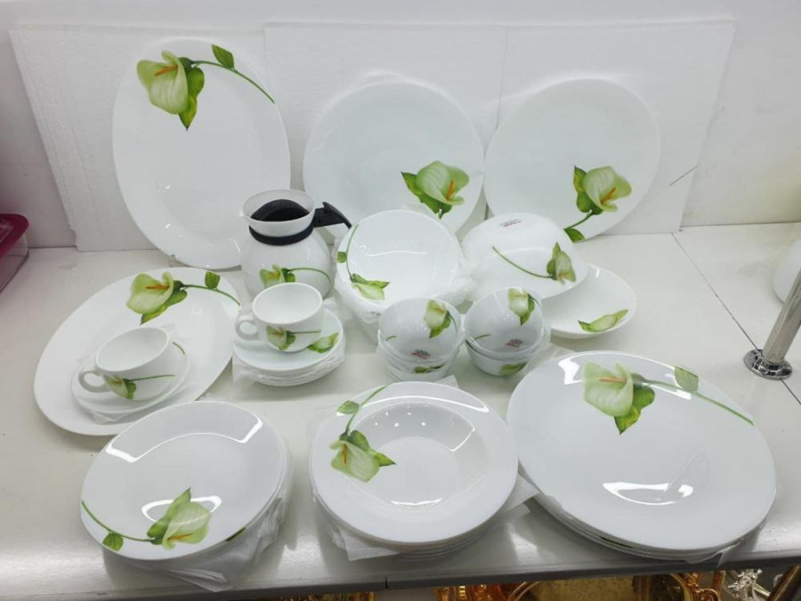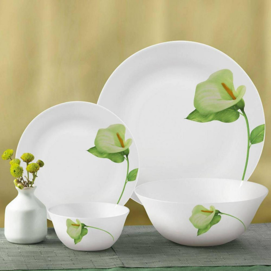 Вся посуда сделанна из опаловаго стекла. Под данной маркой выпускается эксклюзивная посуда, своим интересным дизайном побуждающая стремление к жизни. Утонченные изображения цветов на белом фоне станут украшением стола и придадут сервировке изысканность.