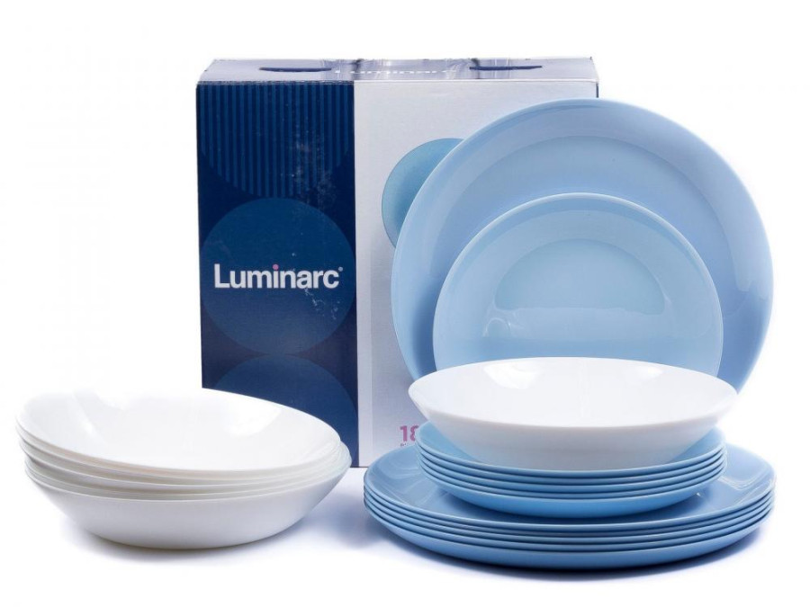 Подробное описание: Столовый сервиз LUMINARC DIWALI LIGHT BLUE & WHITE 18 предметов 6 персон
