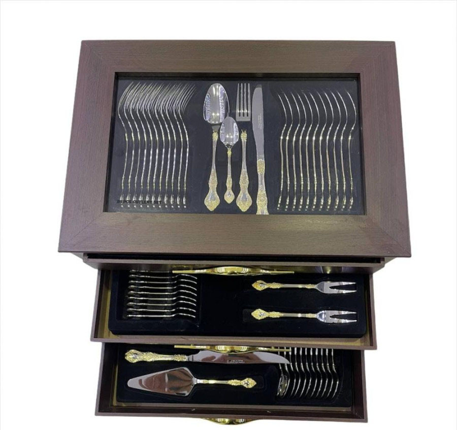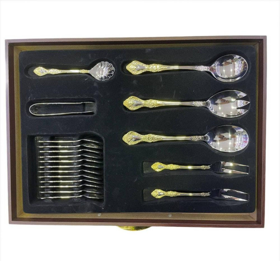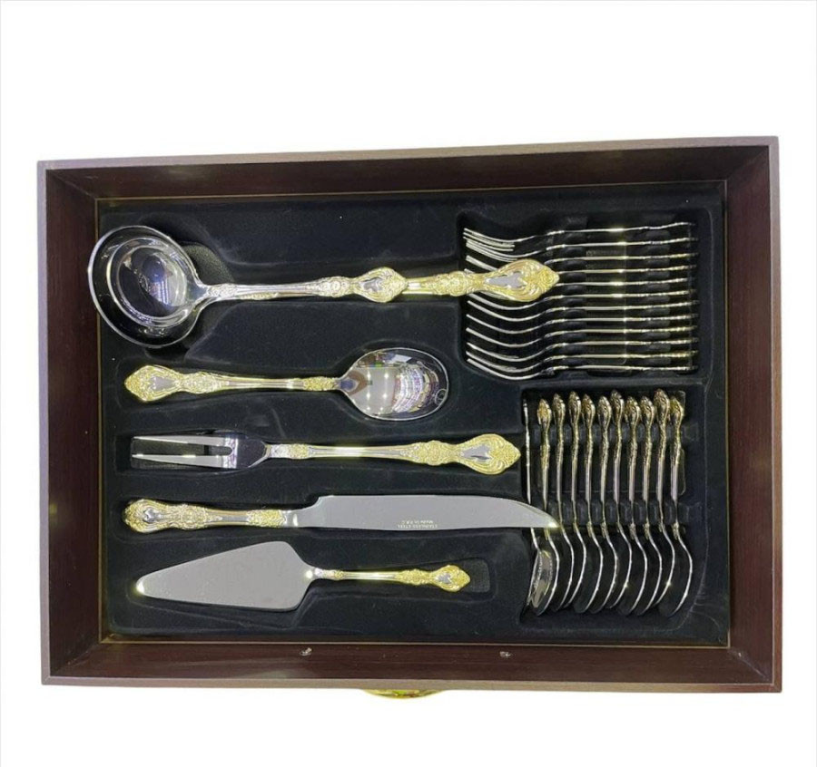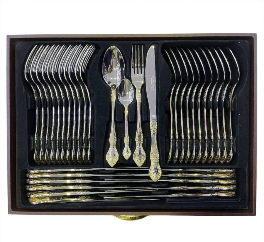 Приборы набора на 12 персон предназначены для сервировки стола для закусок, горячих блюд, для первой и второй перемены, а так же для десерта с чаем или кофе, в том числе и для праздничного торта. Вы непременно получите глубокое удовлетворение, используя такие столовые аксессуары в вашем доме.