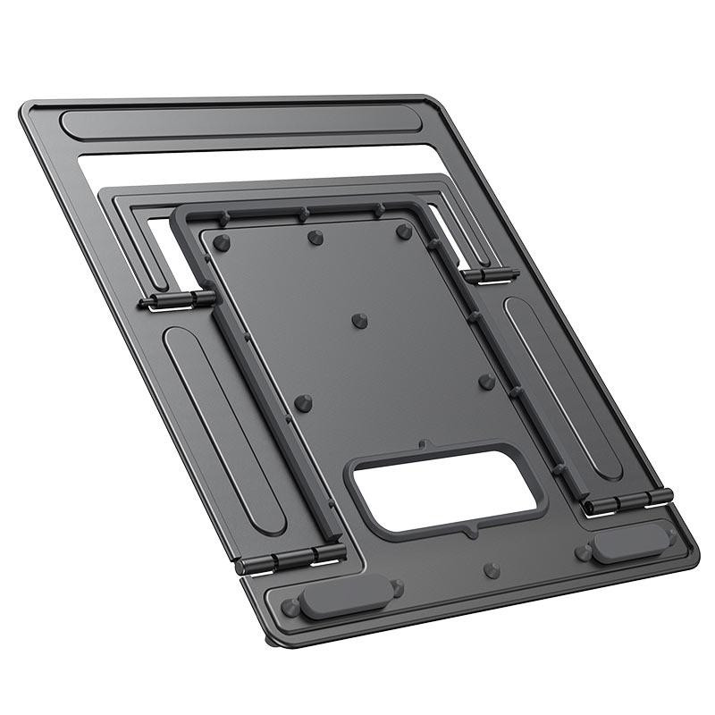 Оригинальная настольная подставка для ноутбуков Hoco PH37 - это современный и полезный гаджет, который превратит вашу работу за ноутбуком в отдых. Стильная складная подставка для ноутбуков с размерами от экрана 10 до 17 дюймов, таких как, MacBook, MacBook Air, Macbook Pro, Microsoft Surface, Google Pixelbook, Dell XPS, HP, ASUS, Lenovo, Acer, Chromebook и других, а также для планшетов, и электронных книг. Держатель для ноутбука Hoco PH37 Excellent устойчив на поверхности, он исключает дрожание ноутбука при наборе текста. При его оптимальной установке, держатель способствует вашей правильной осанке и сведет к минимуму утомление спины, поясницы, шеи, глаз, запястий, а значит, сбережет ваше здоровье и бюджет. В сложенном виде эргономичная подставка становится мкасимально компактной, тонкой и удобной для переноски, в собраном - принимает самую надежную, стабильную и устойчивую форму треугольника. Предусмотренно 4 варианта угла наклона от 19° до 30°, для любого роста. Новый сплав алюминия держит ещё большую нагрузку и подойдет практически для любого ноутбука.