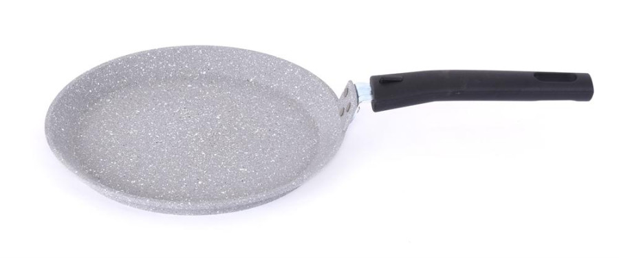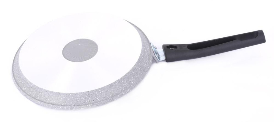 Блинная сковорода "Kukmara" изготовлена из литого алюминия и покрыта инновационным антипригарным мраморным покрытием нового поколения на водной основе, усиленным сверхтвердыми частицами минералов.