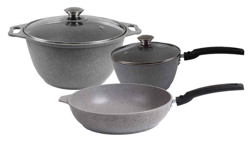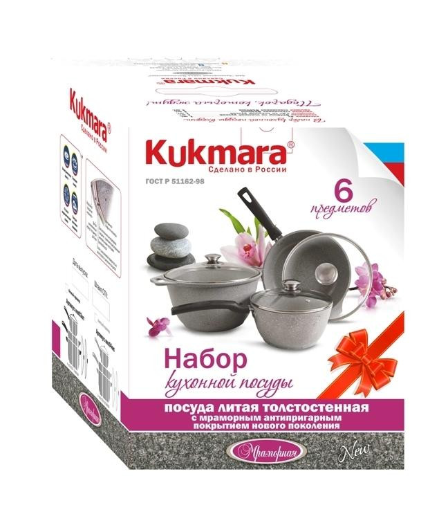 Подробное описание: Набор посуды Kukmara №4 с антипригарным покрытием, линия "Мраморная" (Светлый мрамор)