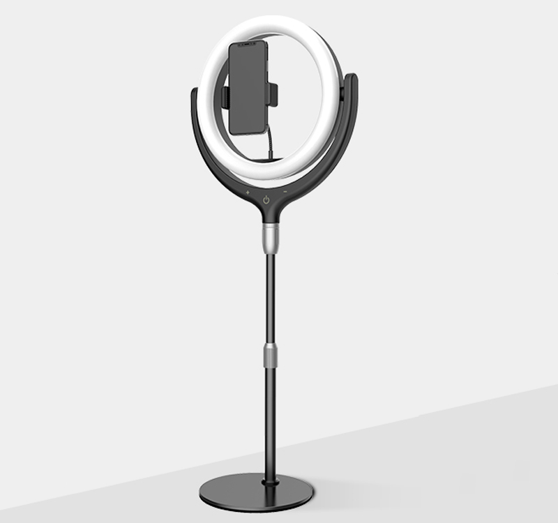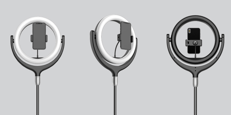 Лампа состоит из круглого кольца-светильника, дугообразного кронштейна и съемного штатива-треноги. Корпус лампы крепкий и аккуратный, сделан из поликарбоната и ABS-пластика.