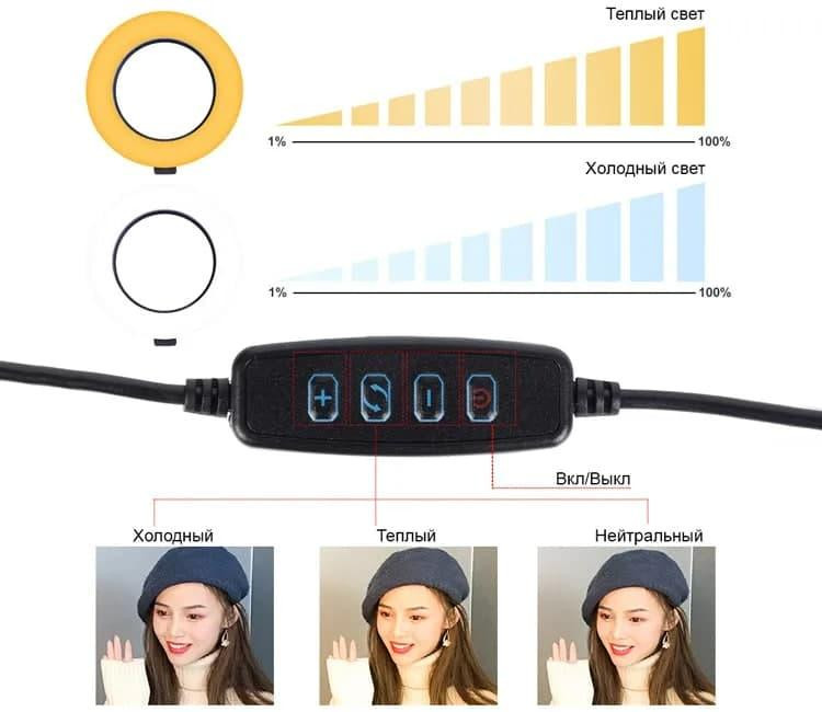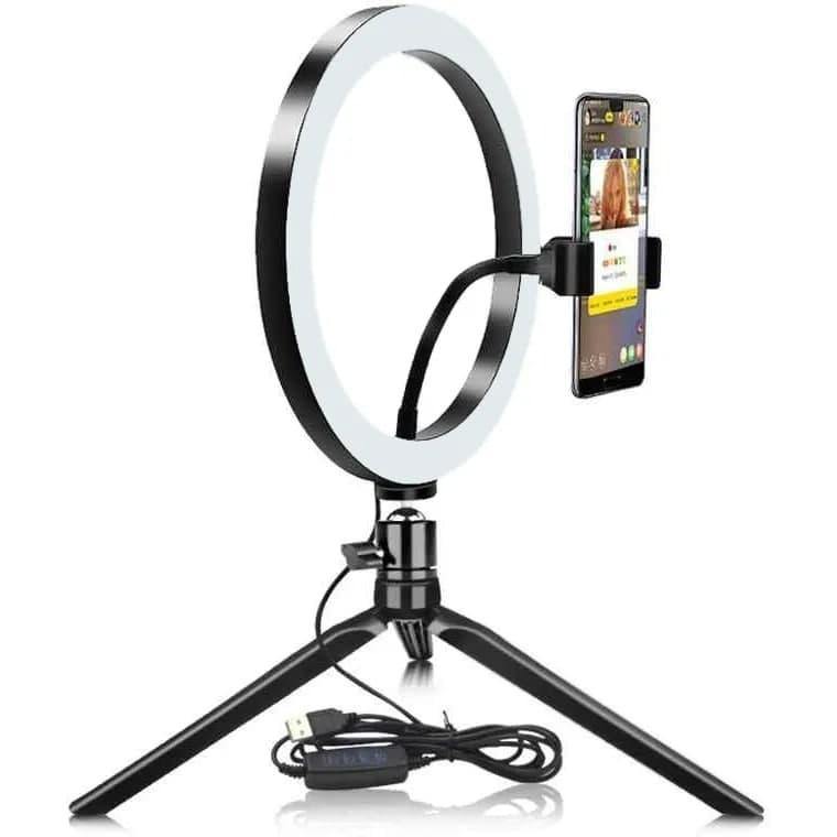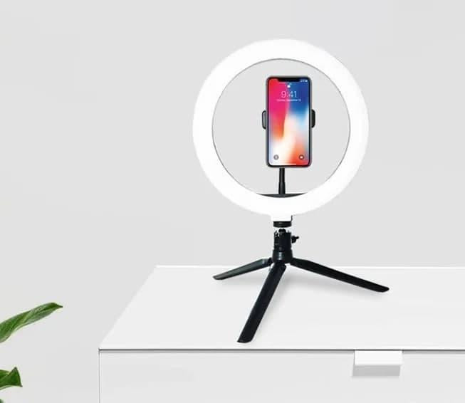 Включает: 26 см кольцевую лампу, зажим для телефона, триногу,