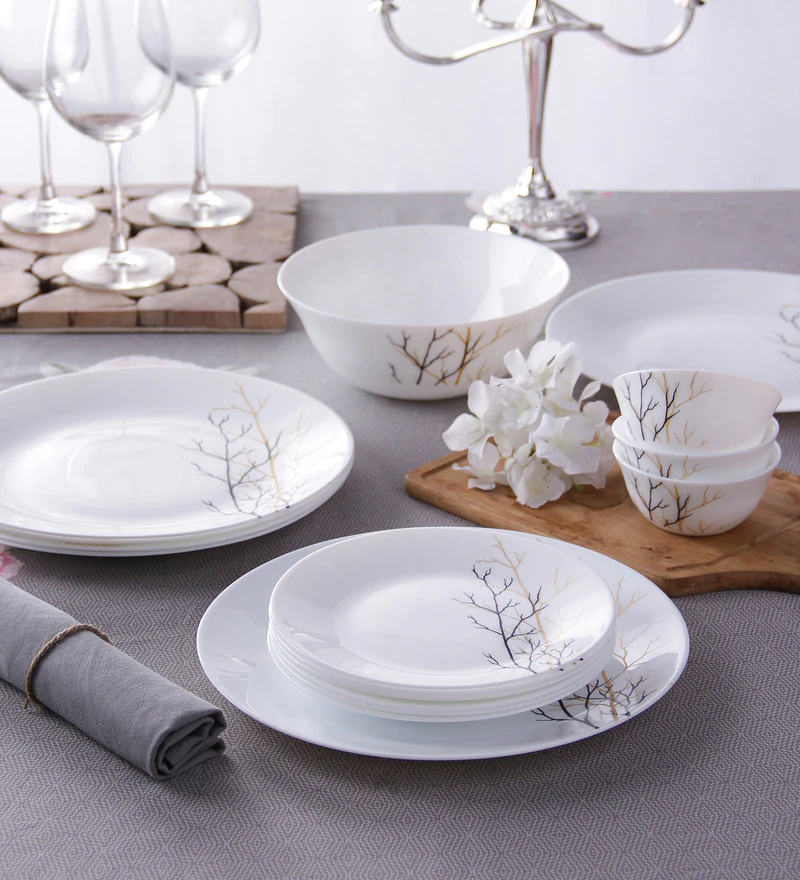 Вся посуда сделанна из опаловаго стекла. Под данной маркой выпускается эксклюзивная посуда, своим интересным дизайном побуждающая стремление к жизни. Утонченные изображения цветов на белом фоне станут украшением стола и придадут сервировке изысканность.