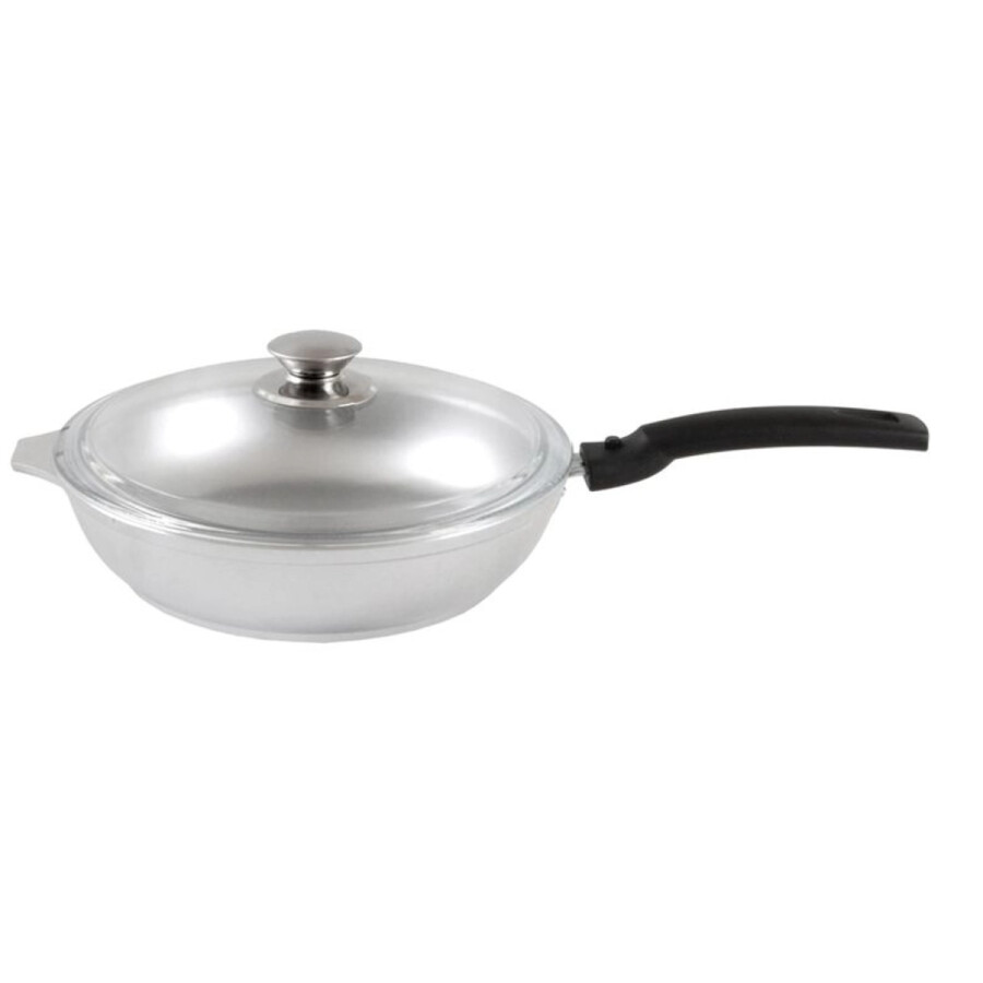 - значительная толщина стенок и дна исключает деформацию корпуса сковороды, гарантирует ее долговечность;