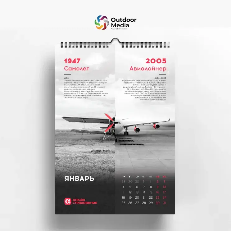 Outdoor Media специализируется на производстве настенных календарей премиум и стандарт класса. Календарь на стене — это не только планировщик, но и важный элемент имиджа вашей компании, который находится перед глазами клиентов круглый год.
