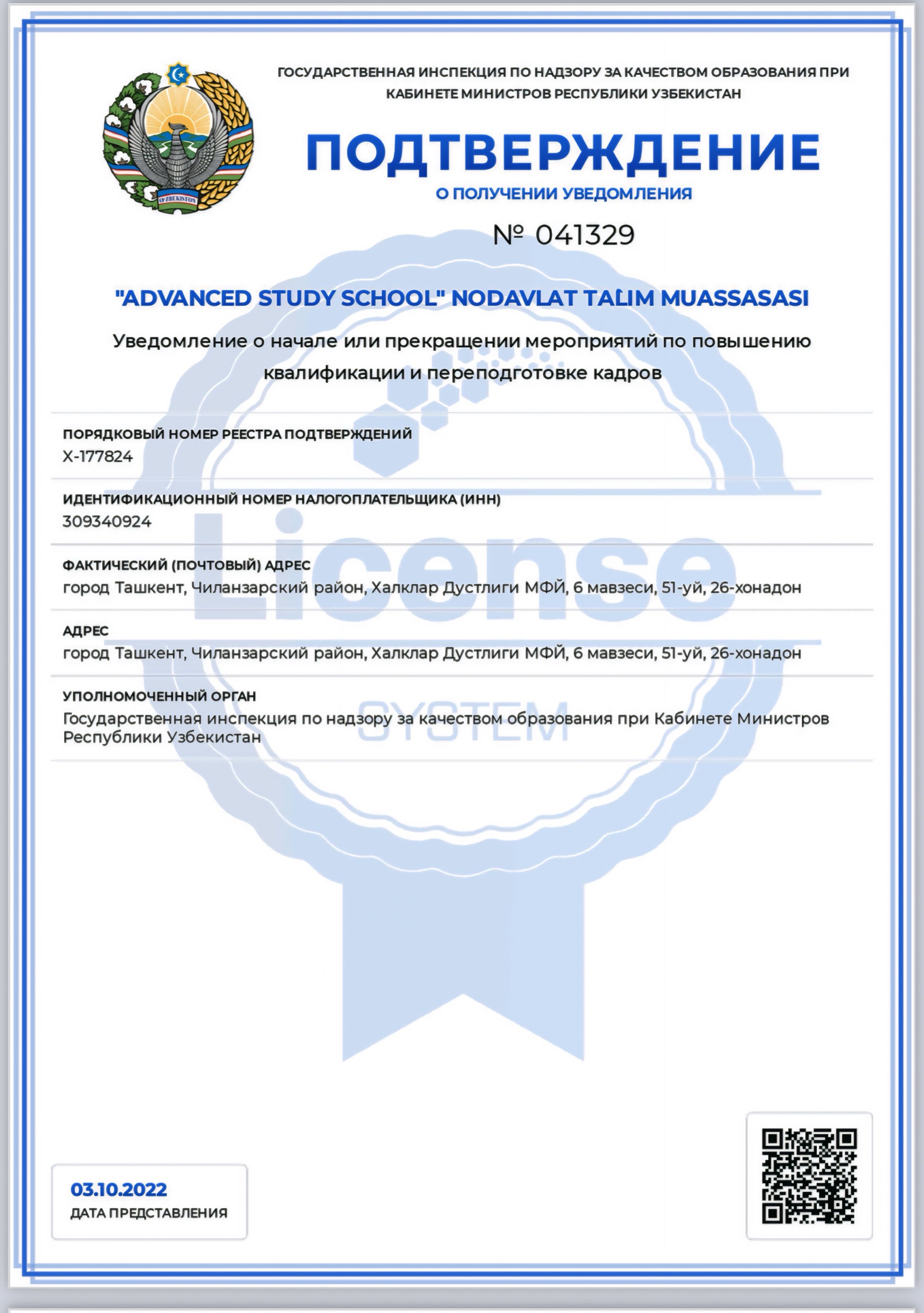 Advanced Study School ("Advanced Study School" MChJ), Chirchiq - barcha tovarlar, xizmatlar va kompaniya haqidagi ma'lumot - Tovar.uz