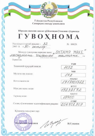 Shtamp Make ("SHTAMP MAKE" MChJ), Samarqand - barcha tovarlar, xizmatlar va kompaniya haqidagi ma'lumot - Tovar.uz