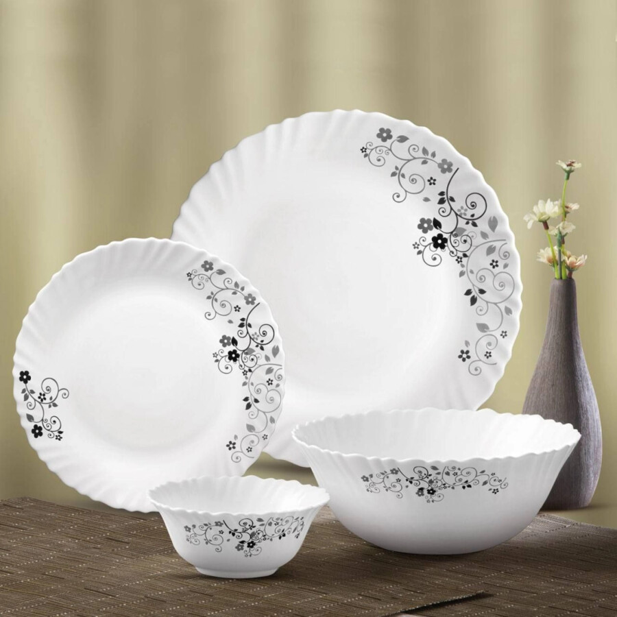 Вся посуда сделанна из опаловаго стекла. Под данной маркой выпускается эксклюзивная посуда, своим интересным дизайном побуждающая стремление к жизни. Утонченные изображения цветов на белом фоне станут украшением стола и придадут сервировке изысканность.