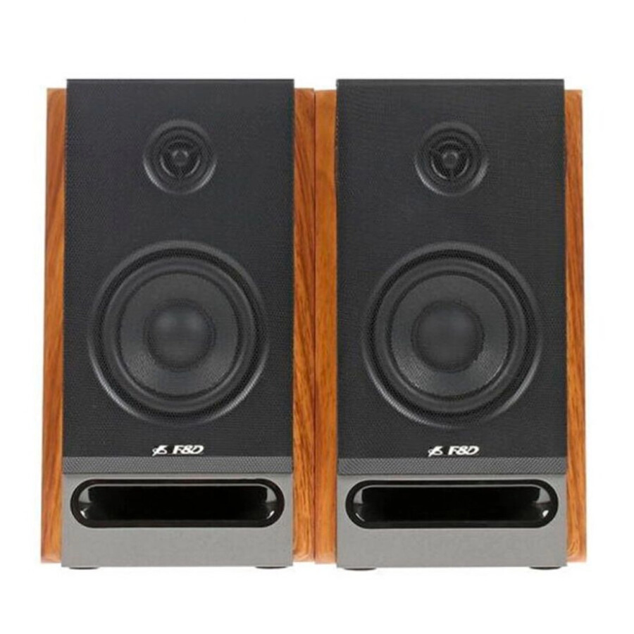 Колонки 2.0 F&D R27BT с подключением через разъем AUX или беспроводной интерфейс Bluetooth характеризуются широкой совместимостью с устройствами – настольными компьютерами, ноутбуками, планшетами, смартфонами. Акустическая система общей выходной мощностью 50 Вт состоит из 1-дюймового динамика ВЧ и 4-дюймого динамика НЧ. В комплекте поставляются аудиокабели для проводного подключения. Корпус колонок F&D R27BT изготовлен из МДФ с приятной отделкой. На задней стороне расположены выключатель и интерфейсные разъемы (в том числе порт USB), а на боковую панель вынесены кнопки управления параметрами звука и воспроизведением.