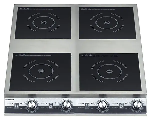 Индукционная плита Hurakan HKN-ICF35DX4 предназначена для приготовления блюд в наплитной посуде на предприятиях общественного питания и торговли. Индукционная конфорка включается сразу после установки на нее посуды и выключается, когда ее убирают, за счет этого сокращается энергопотребление и улучшается микроклимат в кухонном помещении. Модель оснащена цифровой панелью управления и 4 активными джойстиками. Корпус выполнен из нержавеющей стали.
