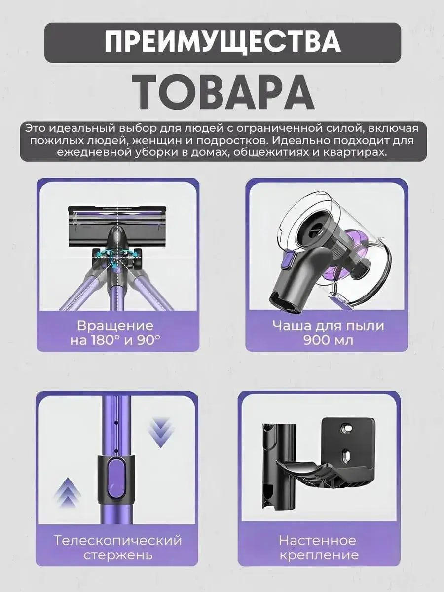 Бытовой аккумуляторный пылесос Rayfurn подходит для вытирания, подметания и всасывания, позволяя эффективно очищать различные поверхности в доме.
