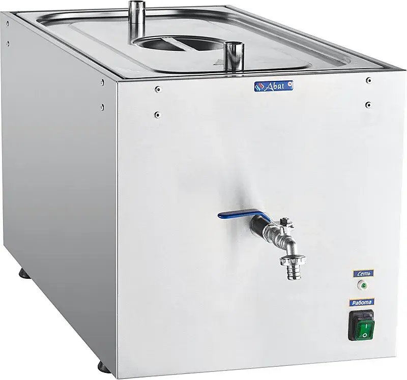 Кипятильник Abat КЭН-100 предназначен для нагрева, кипячения и раздачи воды и приготовления горячих напитков на предприятиях общественного питания и торговли. Модель оснащена индикатором включения ТЭНов.