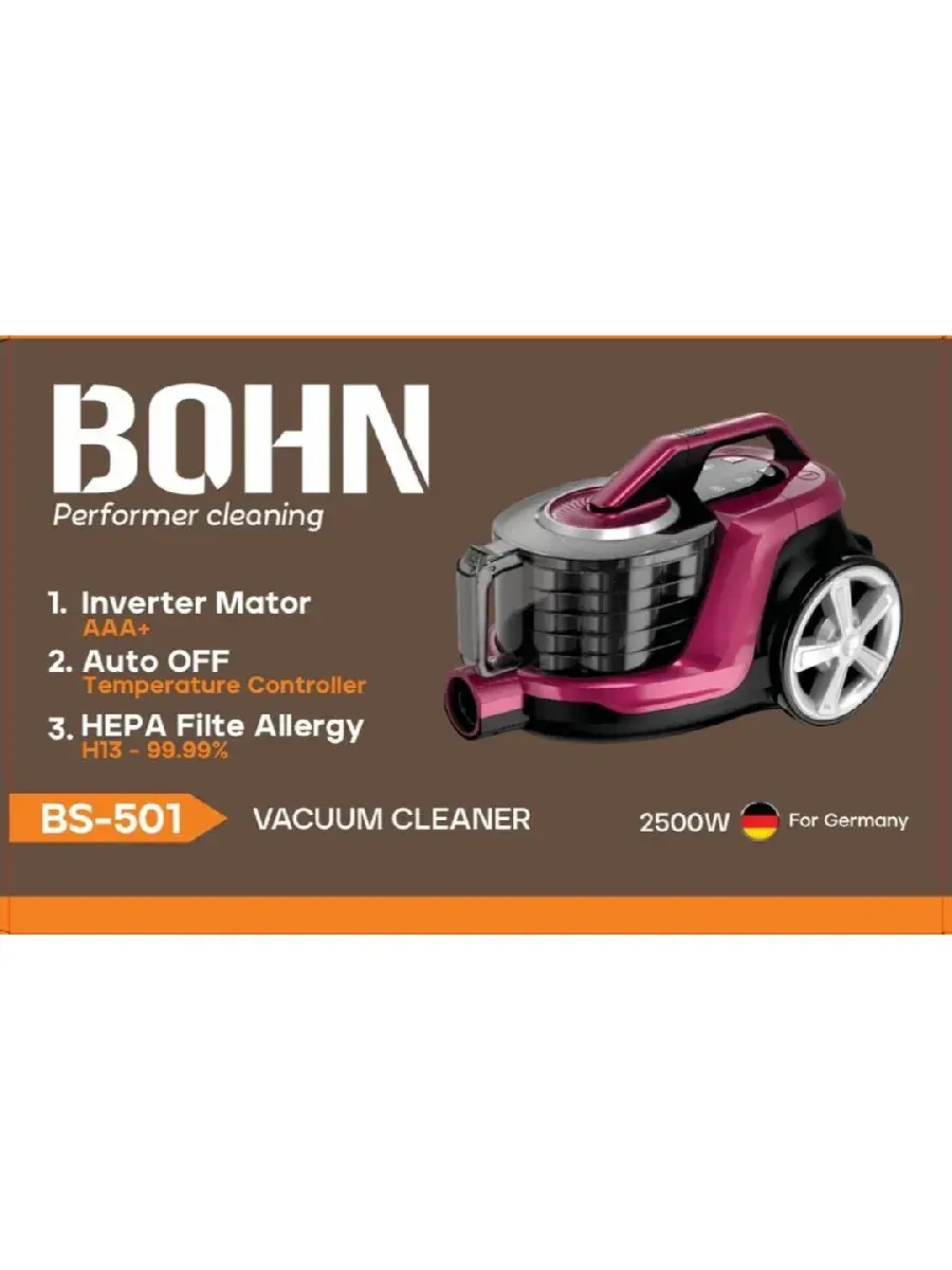 BOHN BS-501 — это сочетание мощности, высокой вместительности и удобства в каждой детали. Оснащён современными технологиями для комфортной и глубокой очистки любого типа пола.
