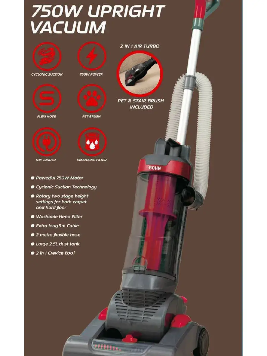 Batafsil tavsif: Germaniyaning Bohn kompaniyasiga tegishli 750Vt quvvatga ega vertikal changyutgich.